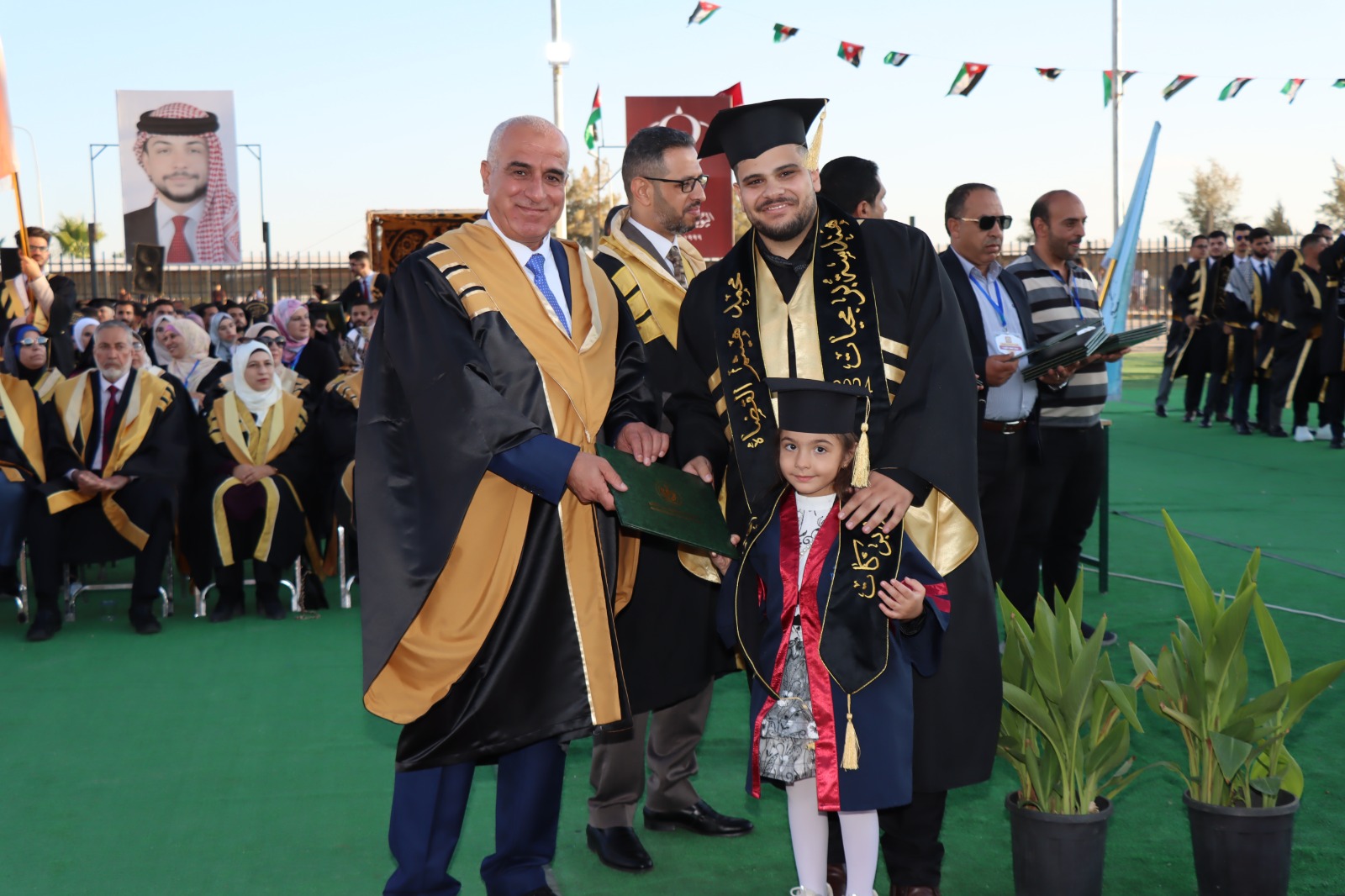 تحت رعاية رئيس جامعة الحسين بن طلال الأستاذ الدكتور عاطف الخرابشة أقيم حفل تخريج الفوج الخامس والعشرين من طلبة جامعة الحسين بن طلال في الساحة الرئيسية للتخريج في الجامعة، والذي استمر على مدار يومين من طلبة الكليات العلمية والإنسانية والدراسات العليا والبالغ عددهم 1943طالباً وطالبة، للفصول الدراسية الاول والثاني والصيفي للعام الجامعي 2023/2024 وبحضور نائب رئيس الجامعة للشؤون الإدارية رئيس اللجنة العليا للتخريج الأستاذ الدكتور محمد الرصاعي