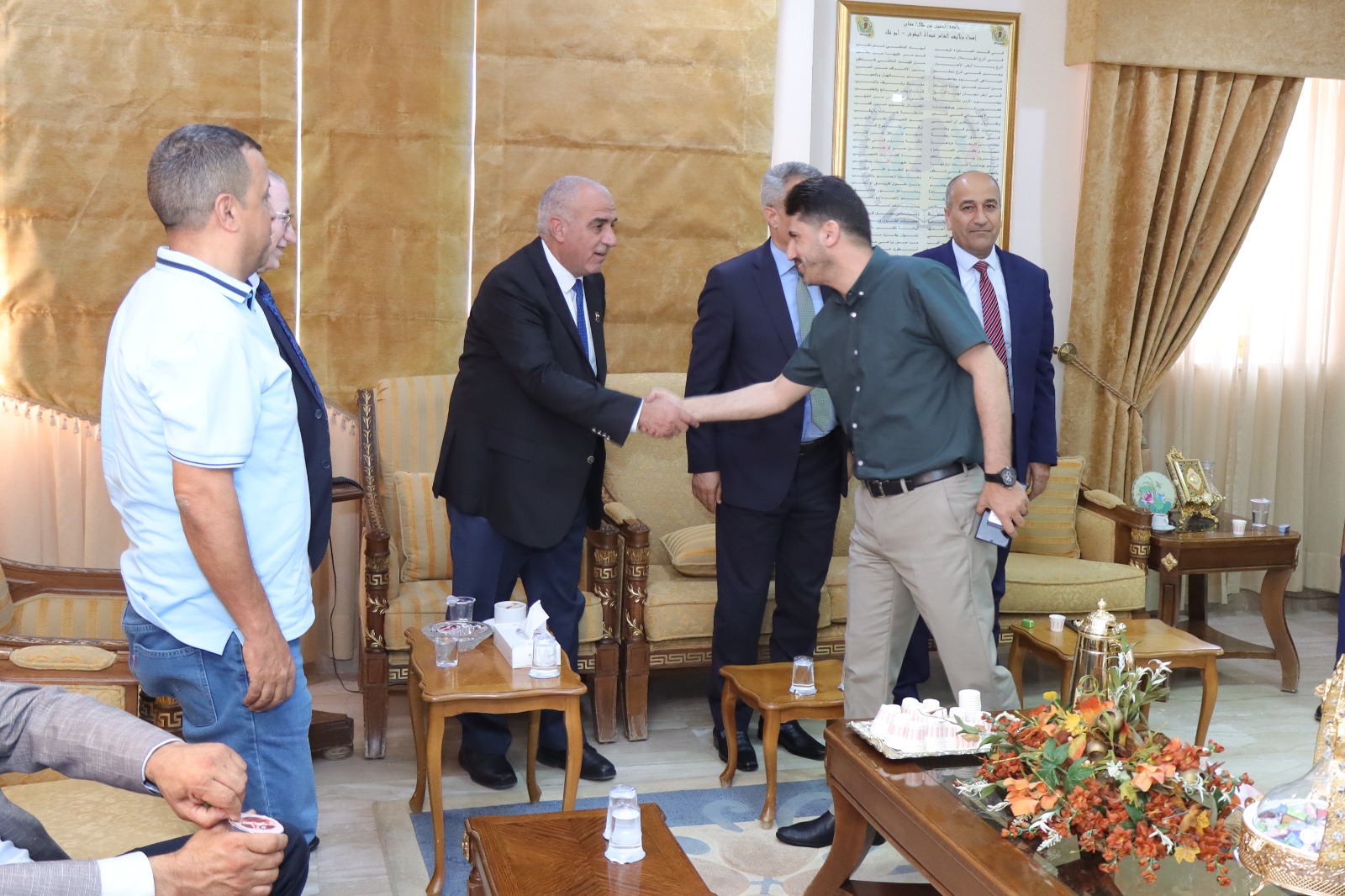 تجسيداً لمعاني التواصل والترابط بين العاملين في الجامعة ومحيطها، جرى تبادل التهاني بمناسبة عيد الأضحى المبارك بين أسرة الجامعة من أعضاء الهيئتين الأكاديمية والإدارية وضيوف الجامعة، وبحضور رئيس الجامعة الأستاذ الدكتور عاطف الخرابشة ونائب الرئيس للشؤون الأكاديمية الاستاذ الدكتور مروان بطيحة، ونائب الرئيس للشؤون الإدارية الأستاذ الدكتور محمد الرصاعي.