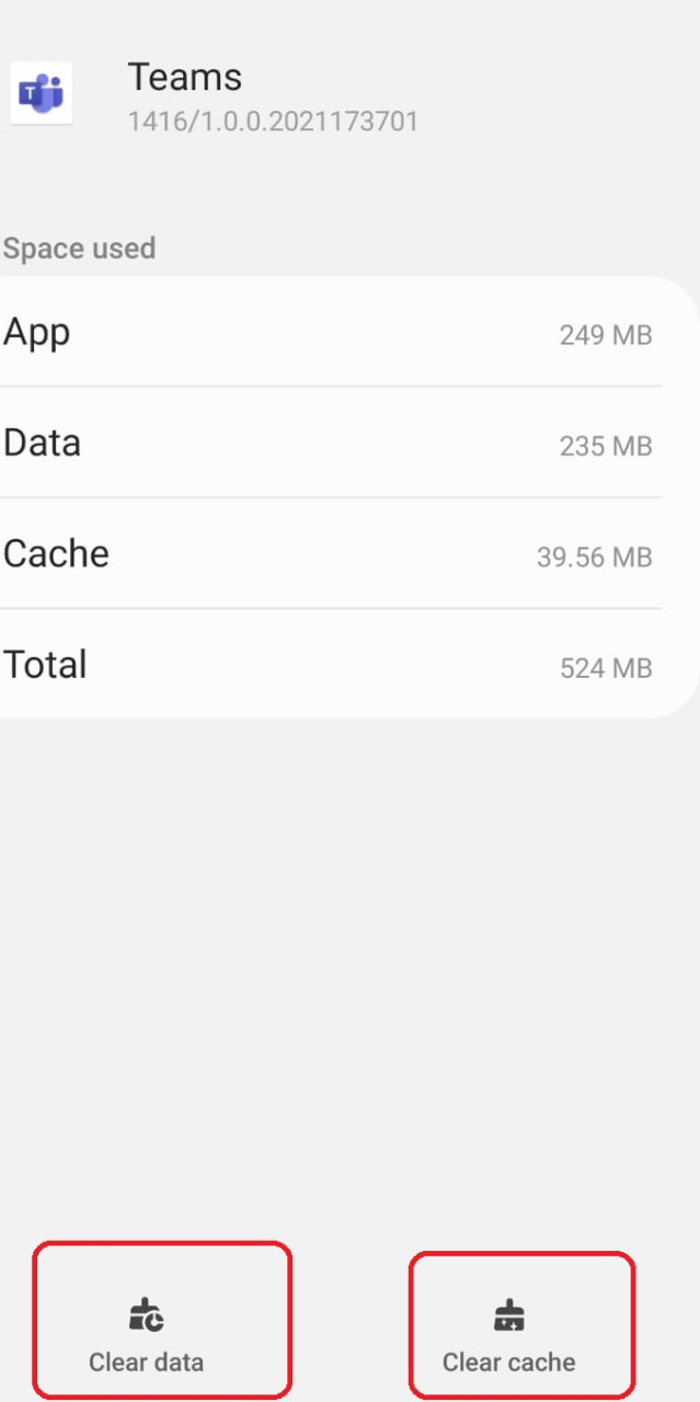 2- إن استمرت  المشكلة يرجى التكرم الدخول إلى إعدادات الهاتف (Settings)   -->  ثم الدخول إلى التطبيقات (Apps) -->ثم  الدخول الى تطبيق   Teams -->ثم الدخول إلى التخزين Storage --> ثم  الضغط على Clear Data  و الضغط على Clear Cache  كما هو موضح في الصور المرفقة .